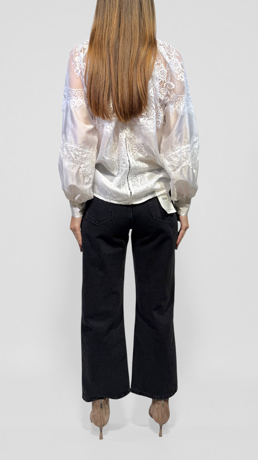 Tensione In - Camicia con collo alla coreana in pizzo .
