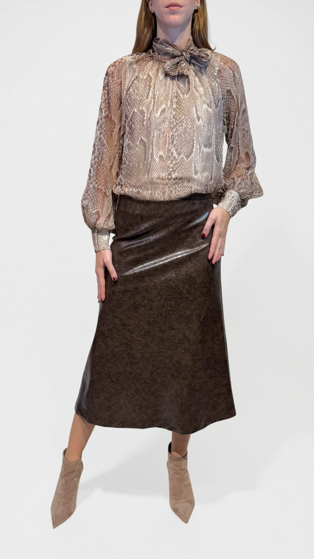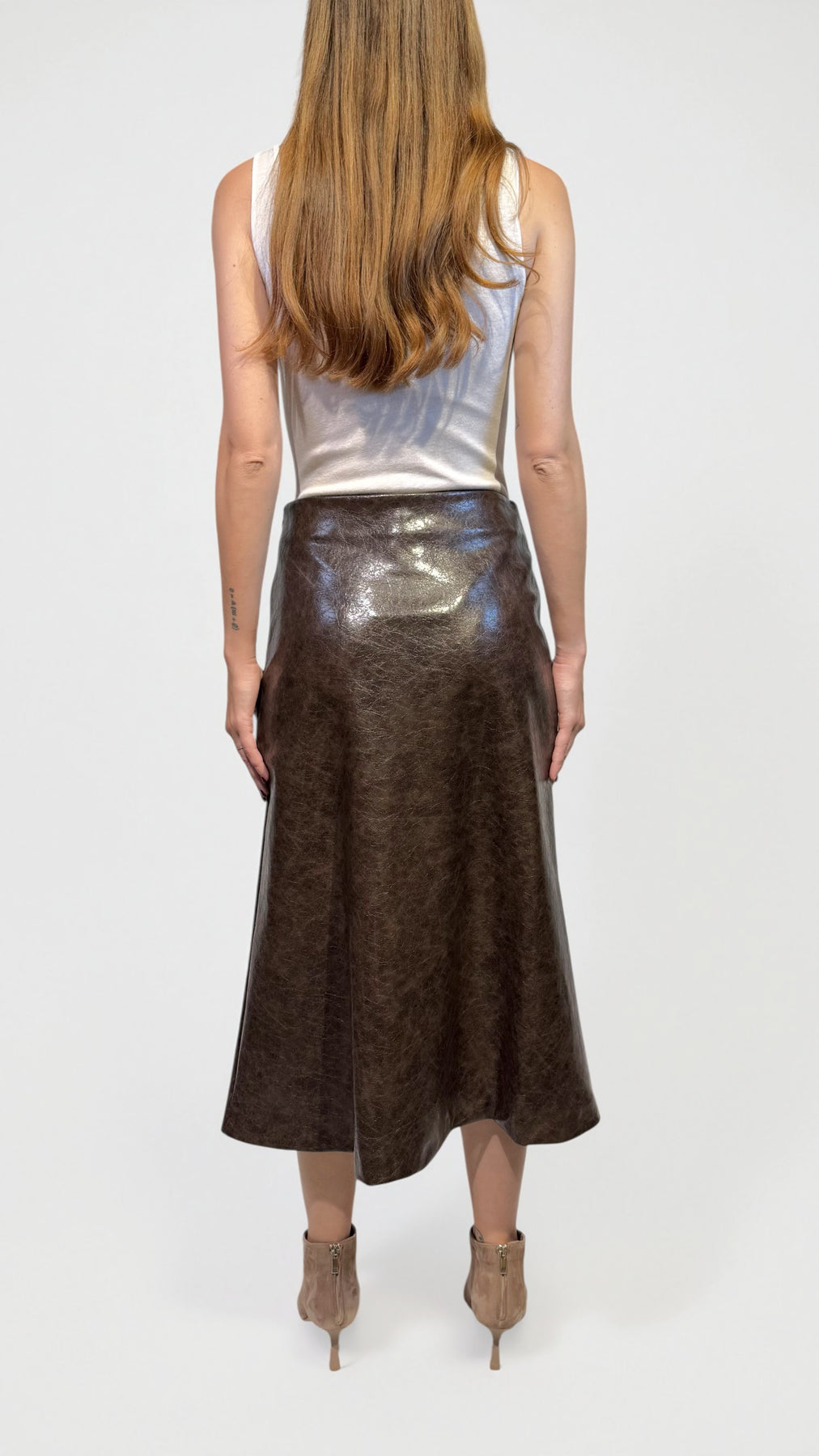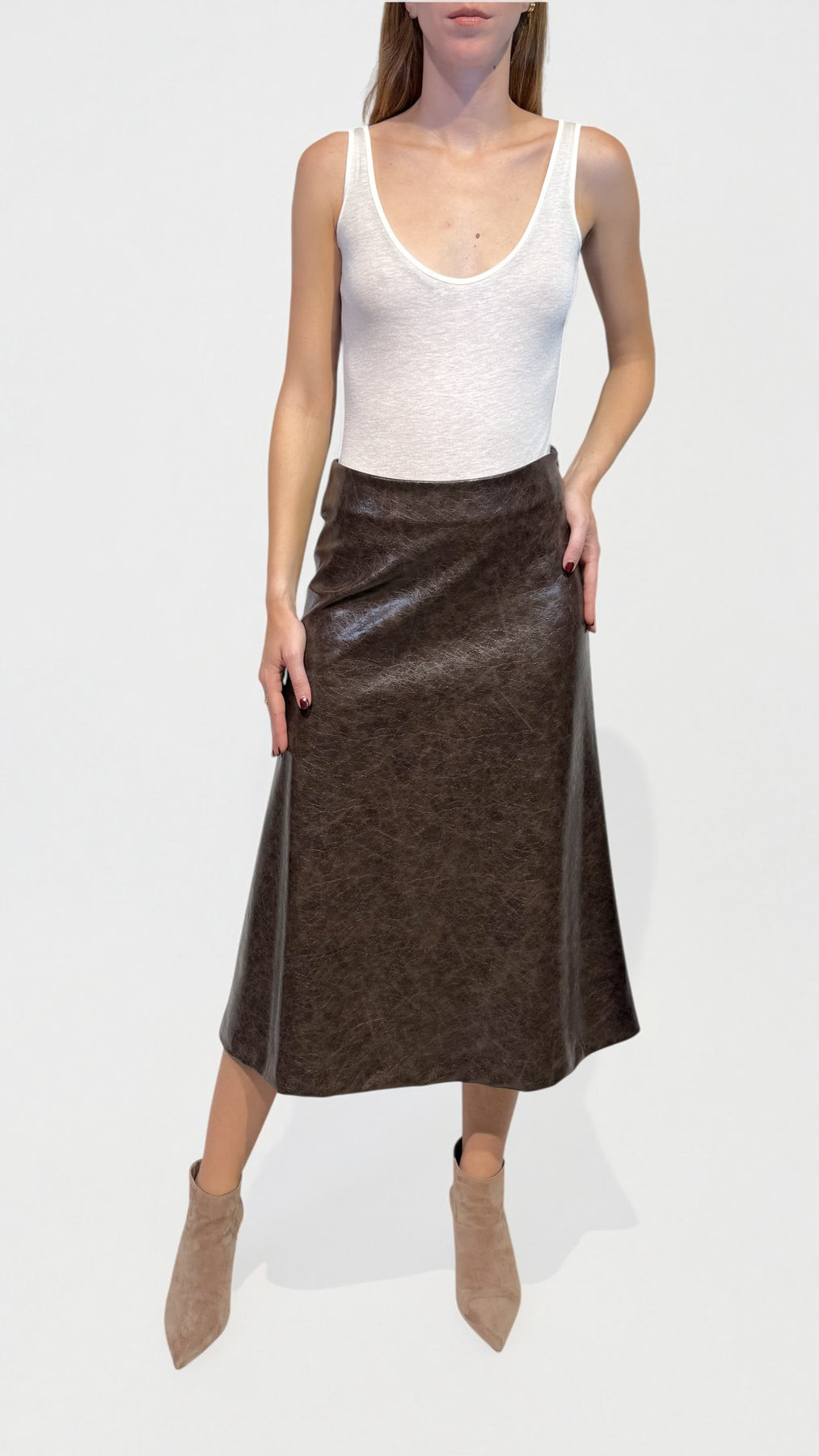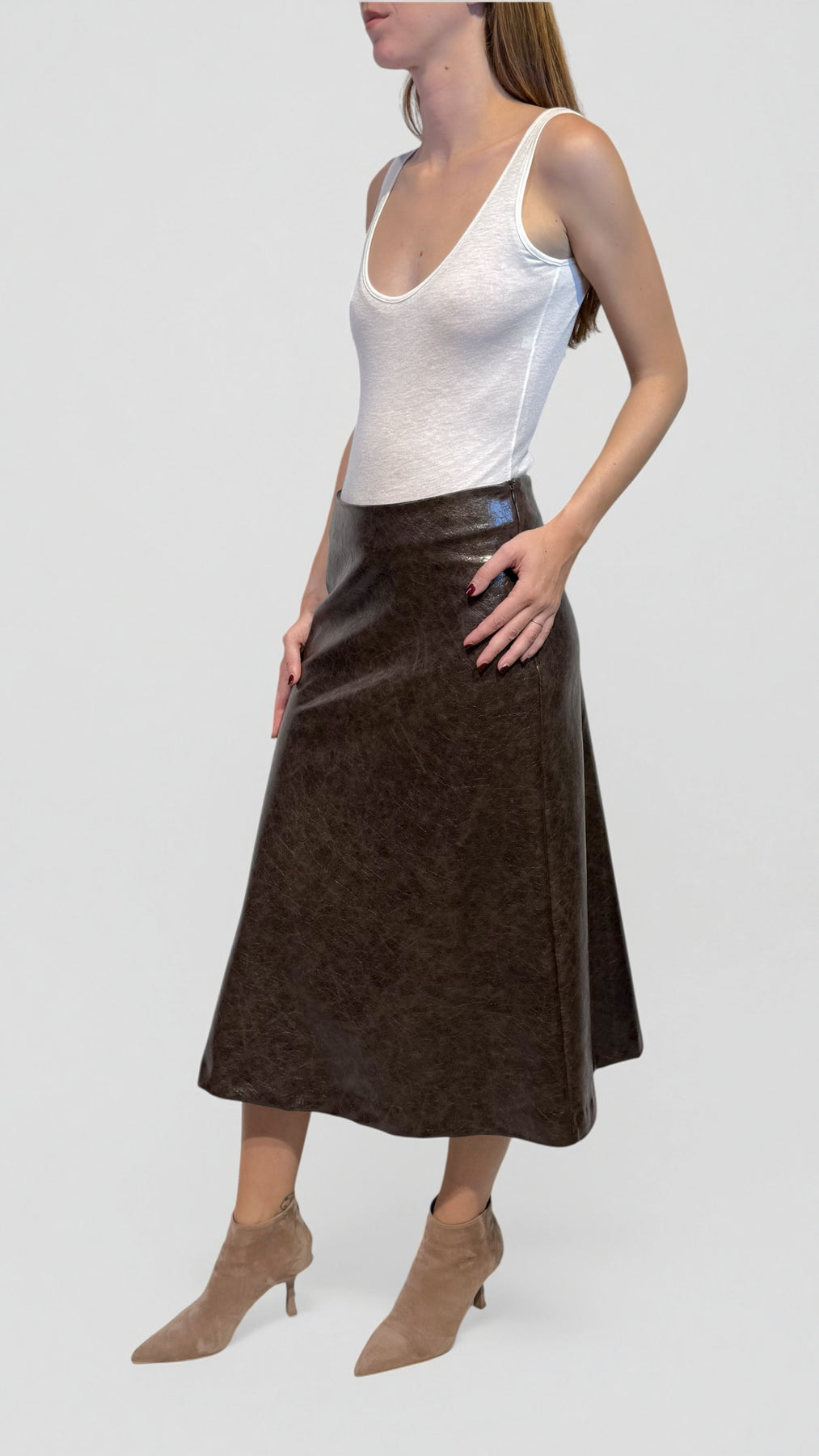 Tensione In - Gonna longuette in ecopelle effetto invecchiato.