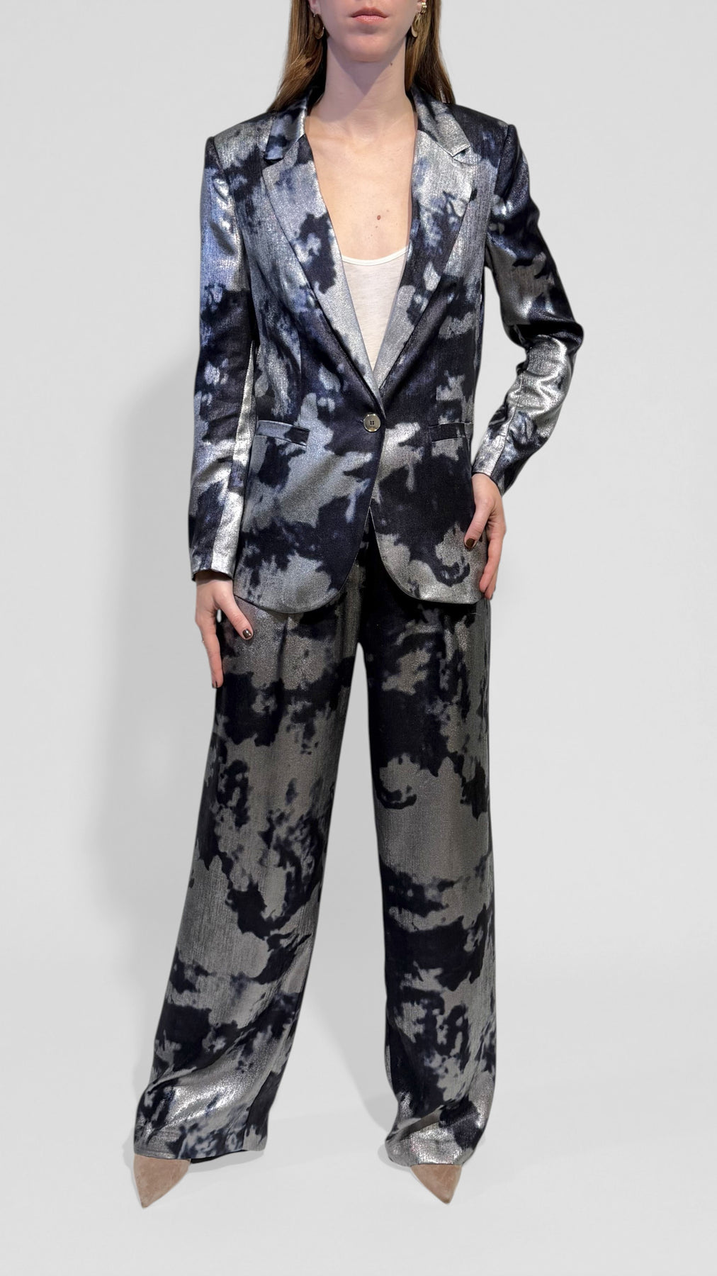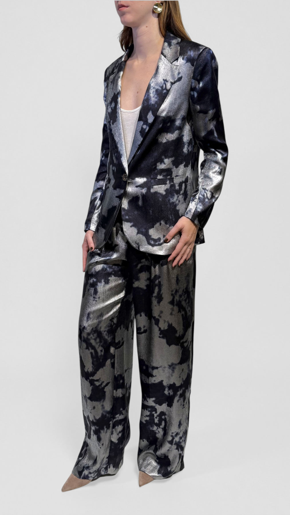 L'armadio di LuLù - Completo giacca monopetto con revers classico effetto tie dye, pantalone palazzo con pinces.