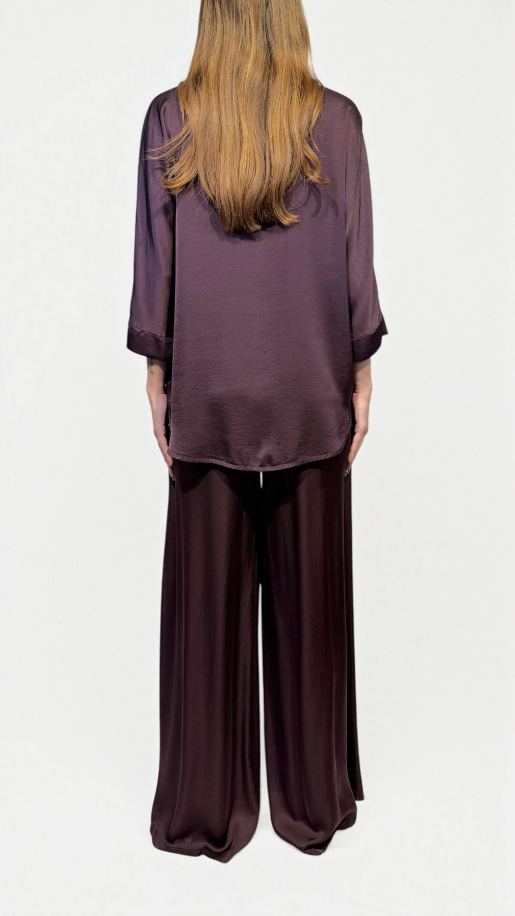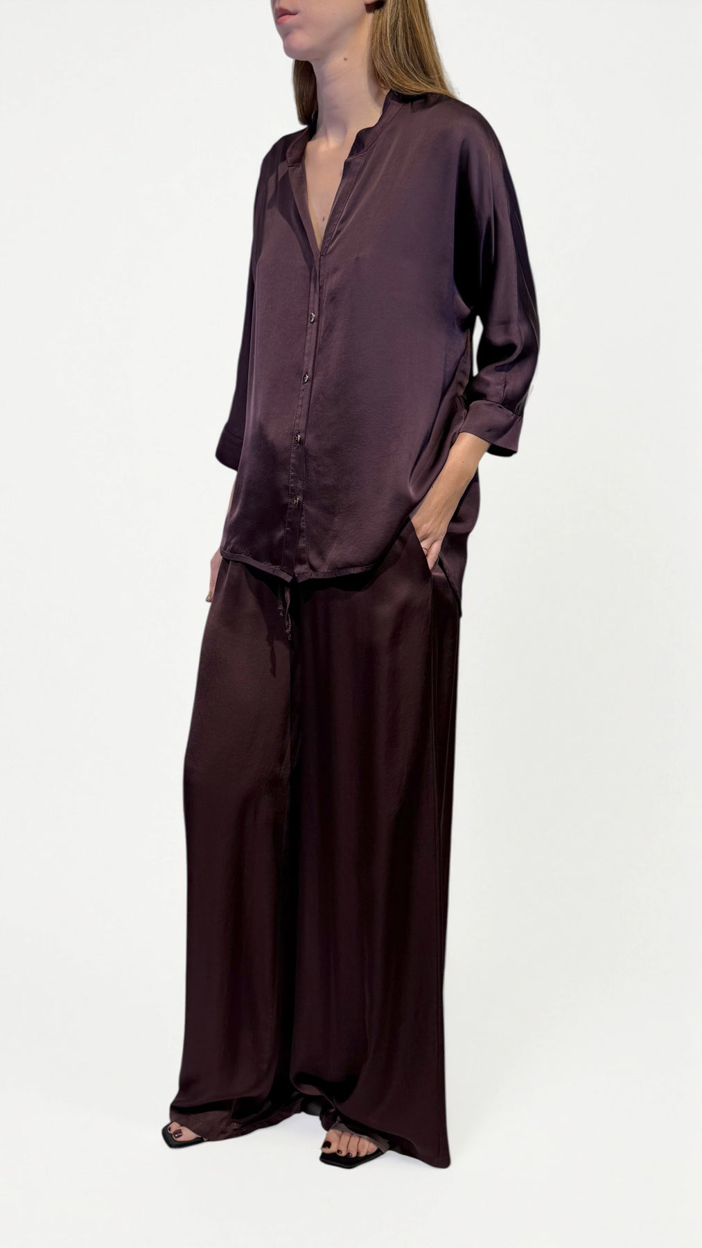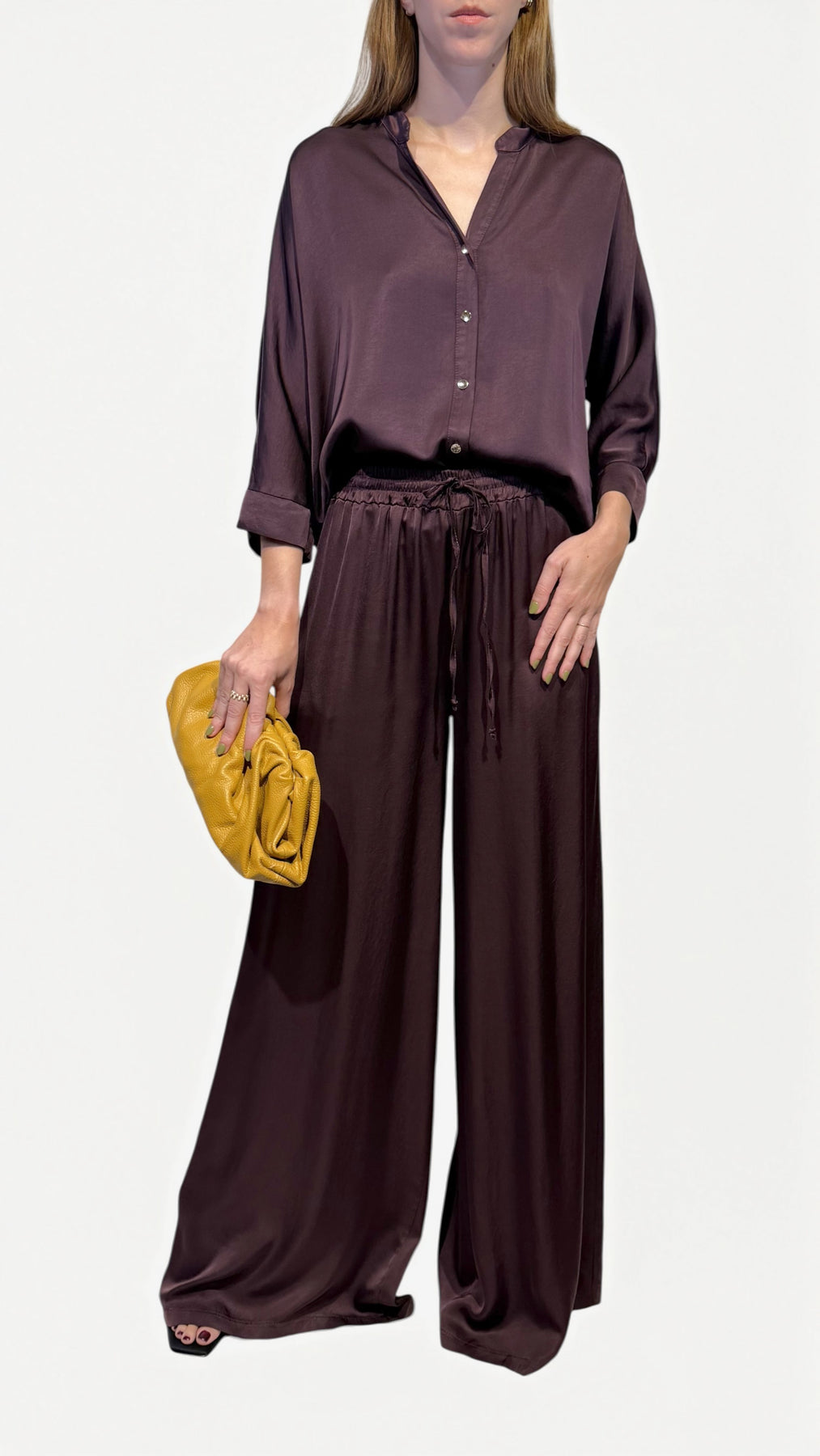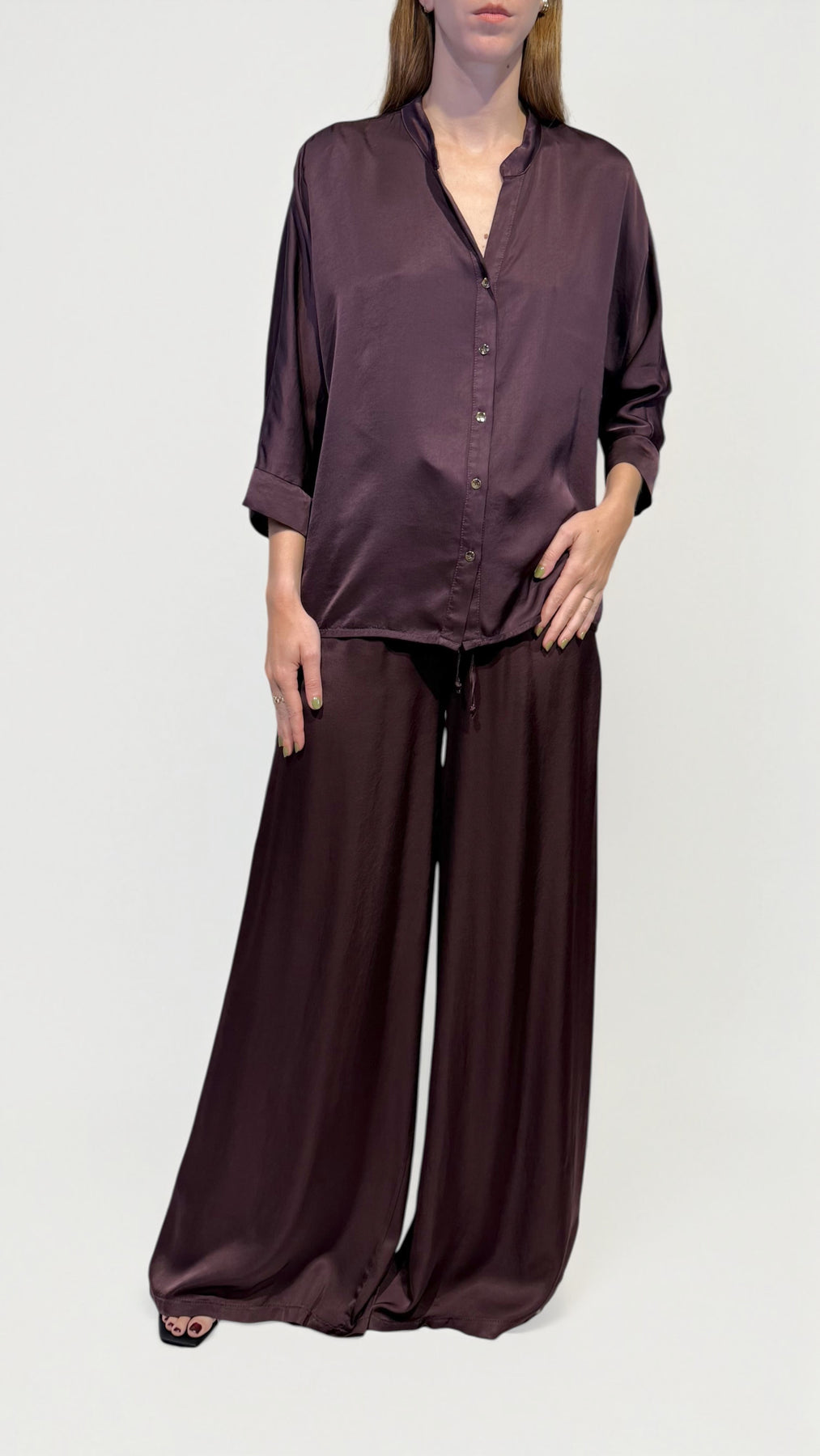 Motel - Camicia collo alla coreana e pantalone palazzo con coulisse.