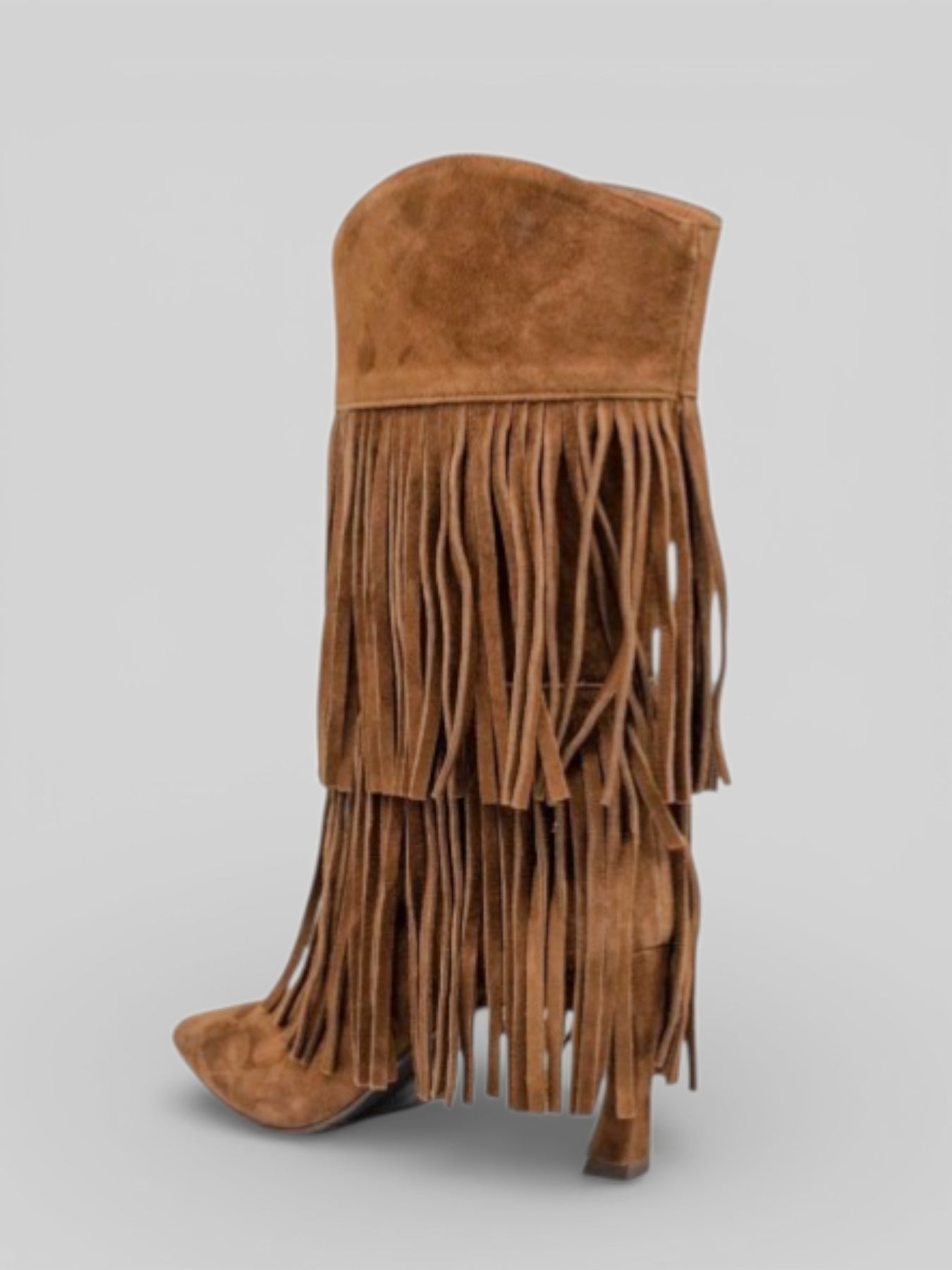 Ovyè - Stivali in camoscio con frange, tacco 7 cm.