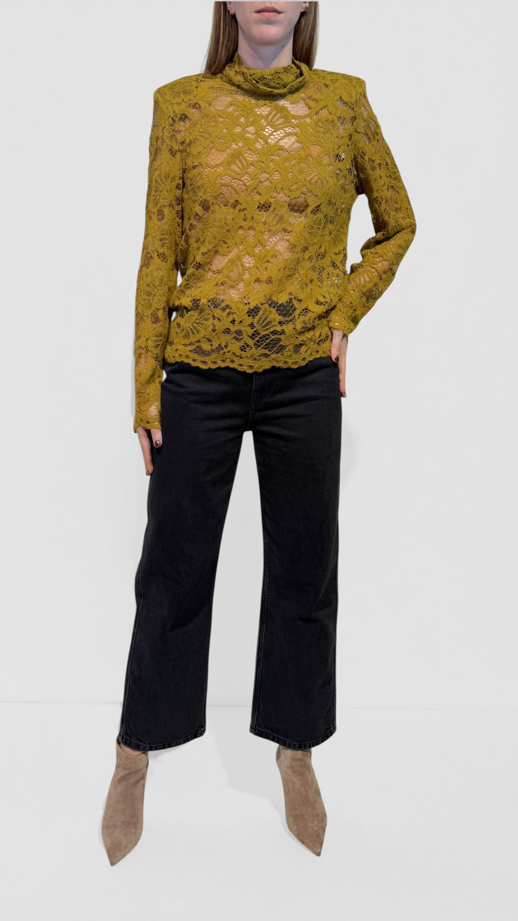 Tensione In - Casacca con collo alto morbido in pizzo agugliato.