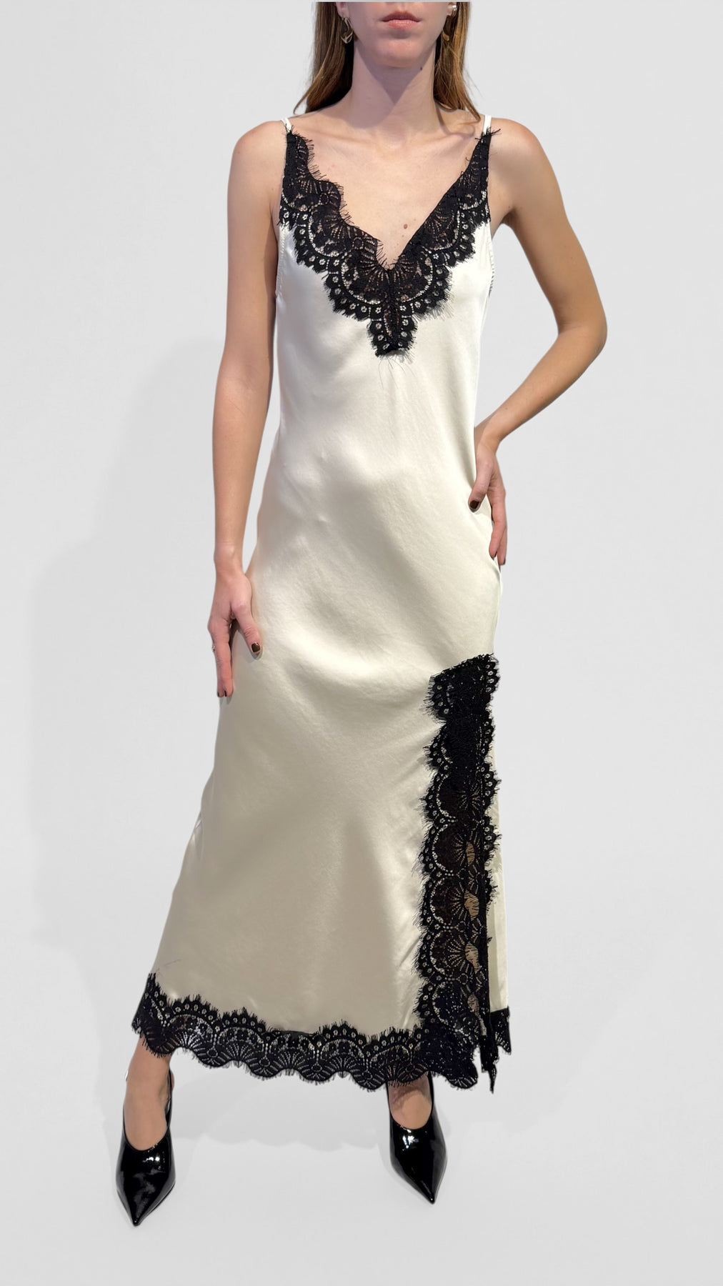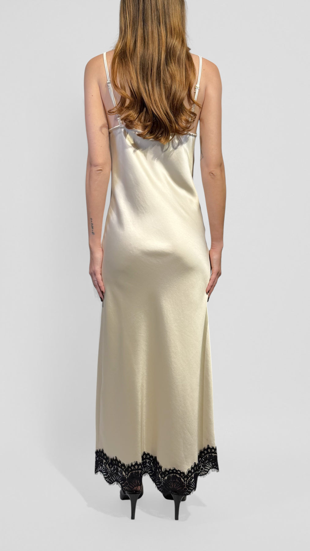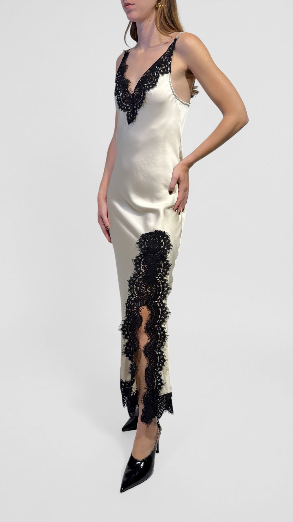 TENSIONE IN - Abito lungo in raso con dettaglio pizzo.
